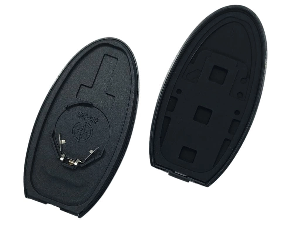 Корпус смарт ключа Nissan, 3+1 кнопки, кріплення батарейки справа, з логотипом