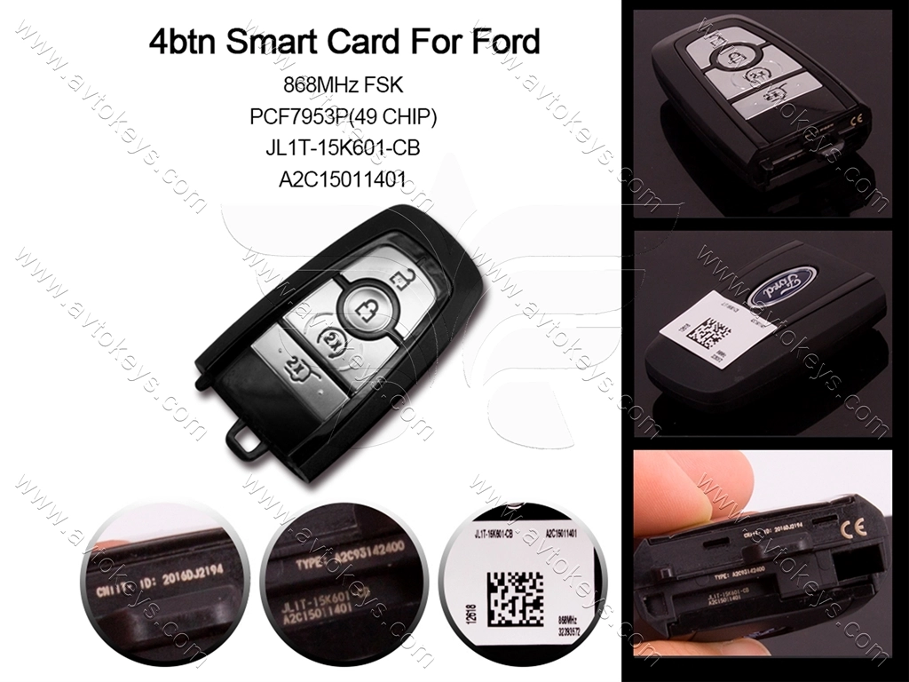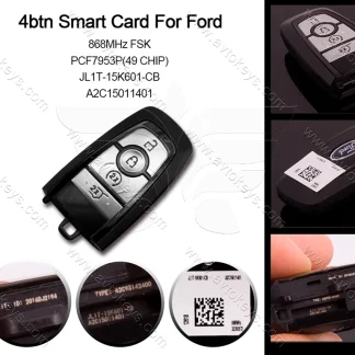 Смарт ключ Ford Escape, Edge, Flex, Explorer, 868 Mhz, A2C15011401, PCF7953P/ Hitag Pro/ ID49, 4 кнопки