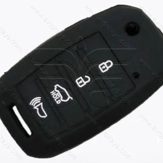Силіконовий чорний чохол для викидного ключа Kia Sportage, 3+1 кнопки, з емблемою